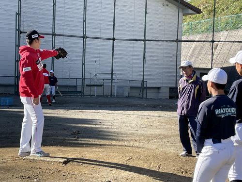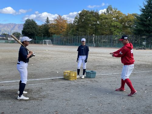 お知らせ, 地域貢献活動 伊那東部中野球教室 掲載日: 2025年11月3日 伊那東部中学野球部の皆さん対象に野球教室をしました。 退団してしまいましたが、 山田夢大選手の母校です。 それがご縁で、 今シーズン後援会のチーム会員になってくださいました。 山上信吾選手 三原田京成選手が、 1、2年生対象に指導しました。