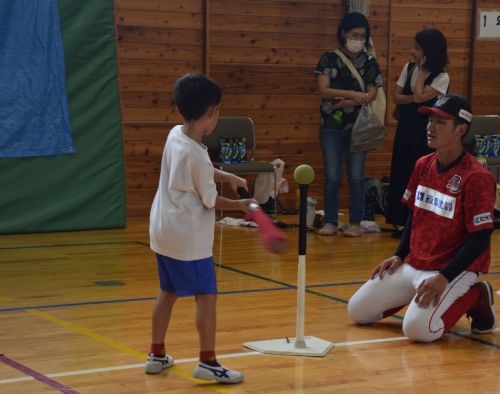 お知らせ, 地域貢献活動 綿内小学校創立150周年「職業体験イベント」に参加 掲載日: 2024年9月21日 長野市立綿内小学校が今年、創立150周年の節目を迎えるにあたり、 「職業体験イベント」を開催、 小学生1、2年生にストラックアウトやティーボールで 野球の楽しさを体験していただきました。