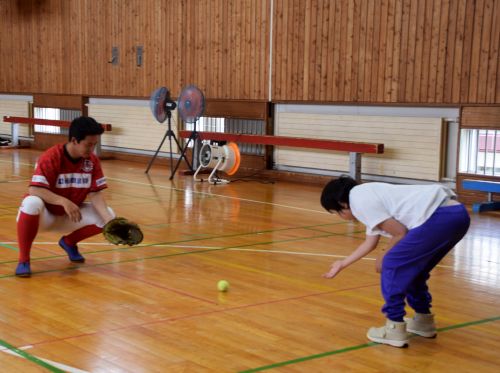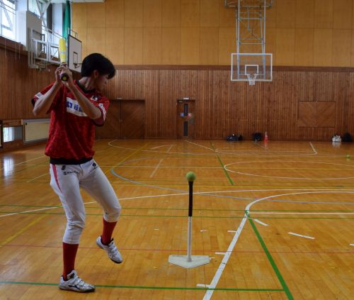 あまり見る事の無い、石野田選手のバッティングを披露。