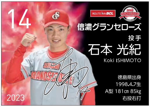 👉プレーヤー名刺カード「石本光紀」選手 先着100名様プレゼント