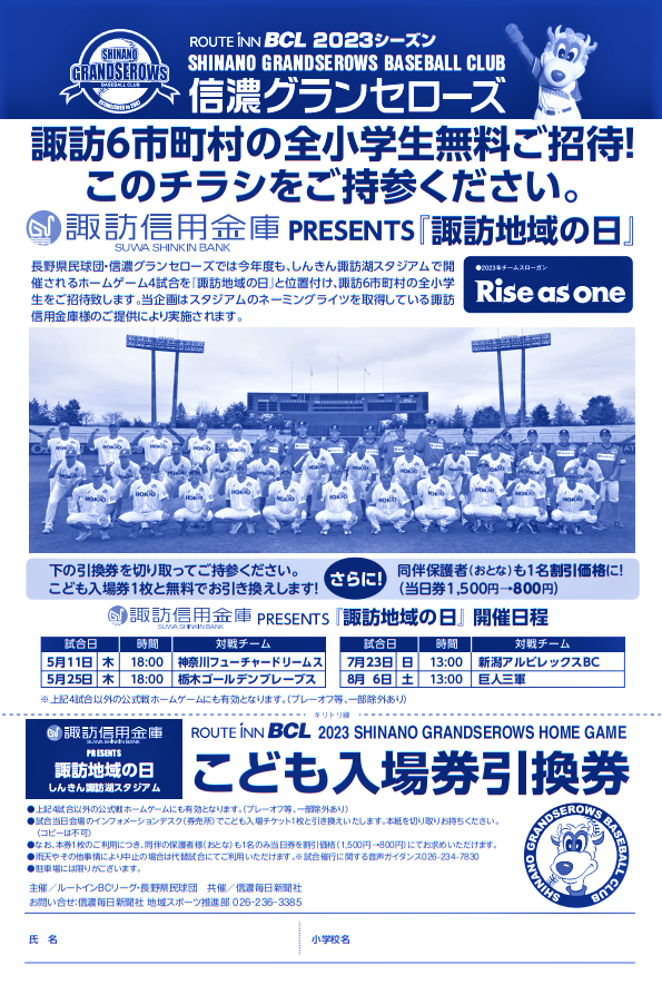 ※小学校を通じて配布された招待チラシを球場のインフォメーションデスクまでお越しください。