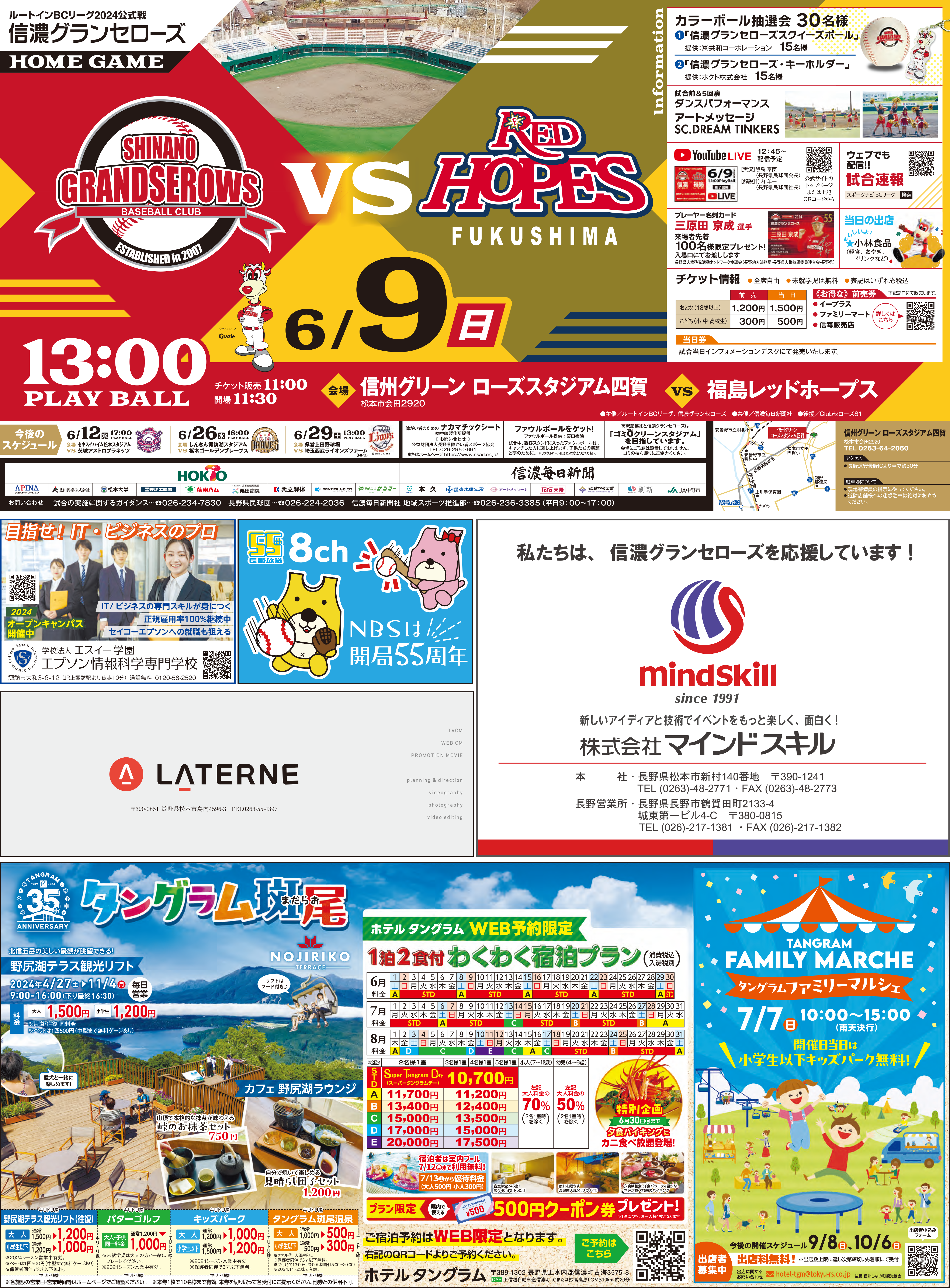お知らせ, マッチデースポンサー 6月9日 vs福島(@四賀)マッチデースポンサー紹介 掲載日: 2024年6月9日 マッチデースポンサー紹介(五十音順) LATERNE NBS長野放送 エプソン情報科学専門学校 タングラム斑尾 マインドスキル ご協賛、誠にありがとうございました。