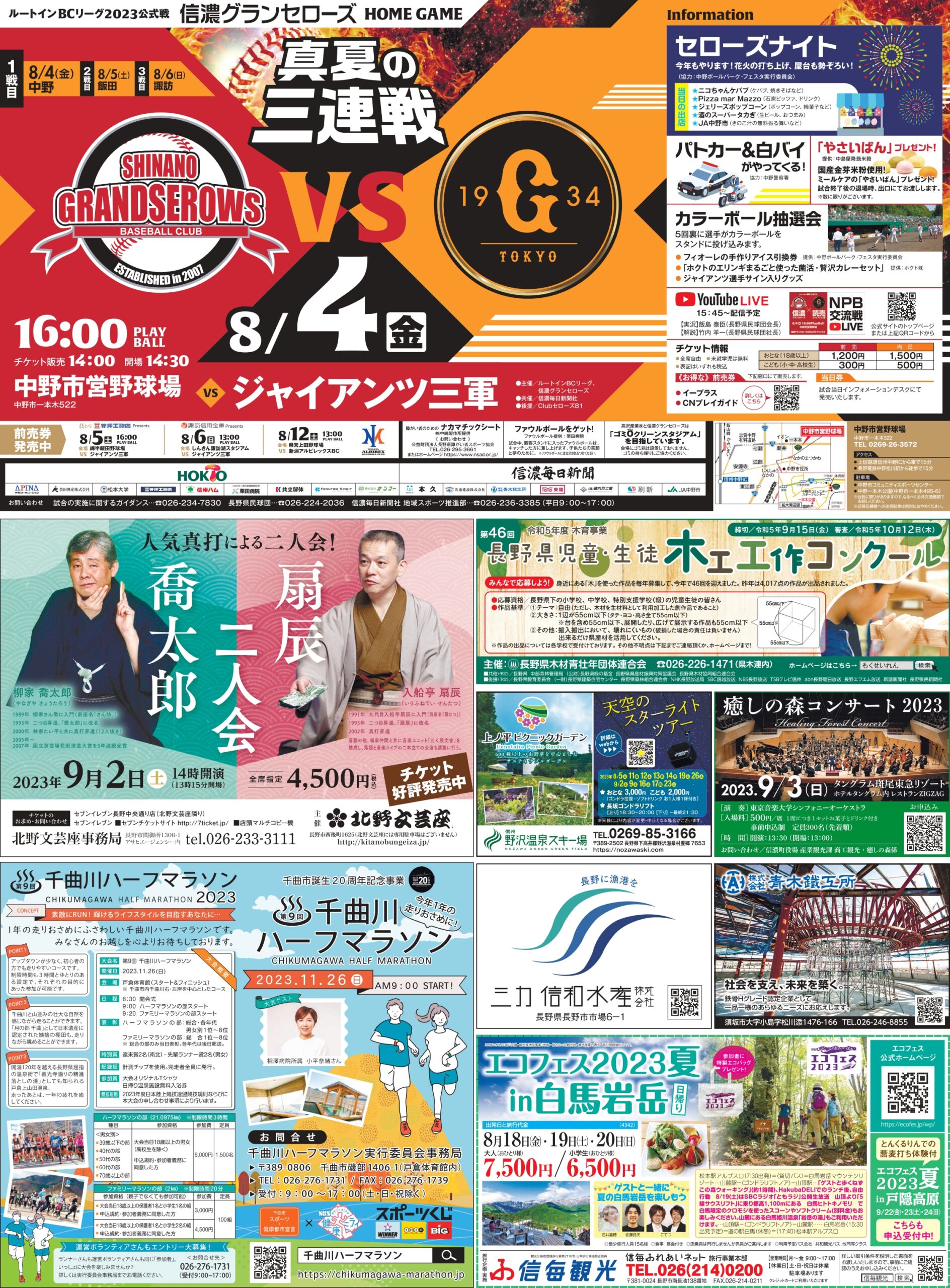 8月4日vs読売ジャイアンツ三軍戦(@中野市営)マッチデースポンサー紹介