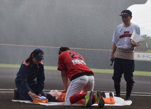 宮口選手が救急車を呼びに行っています。