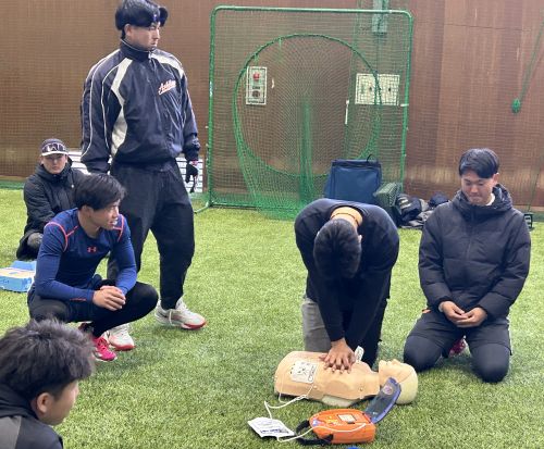 の一環として、AEDの講習会を実施、